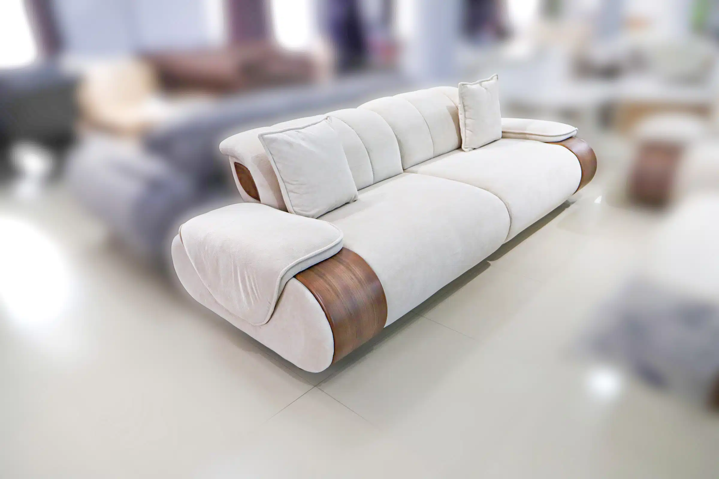 Drveni bočni elementi i drvene nogare daju prirodan i luksuzan izgled, dok kvalitetan sunđer obezbeđuje visok nivo udobnosti i dugotrajnost.