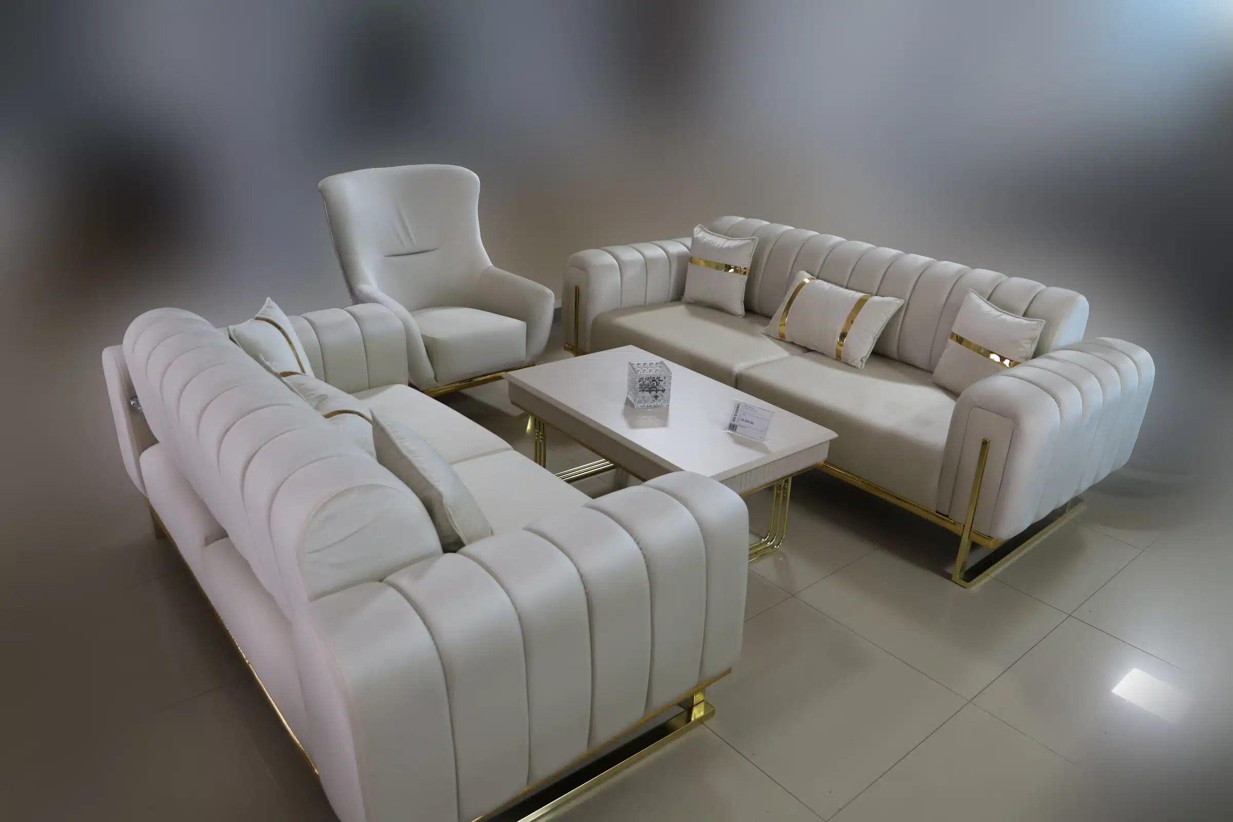 Garnitura Berlin 3-2-1 kombinuje moderan dizajn, luksuzne zlatne detalje i udobnost u jednom setu. Bež nijansa unosi toplinu i lako se uklapa u različite enterijere, dok kvalitetan mebl-štof obezbeđuje trajnost i prijatan osećaj tokom korišćenja.