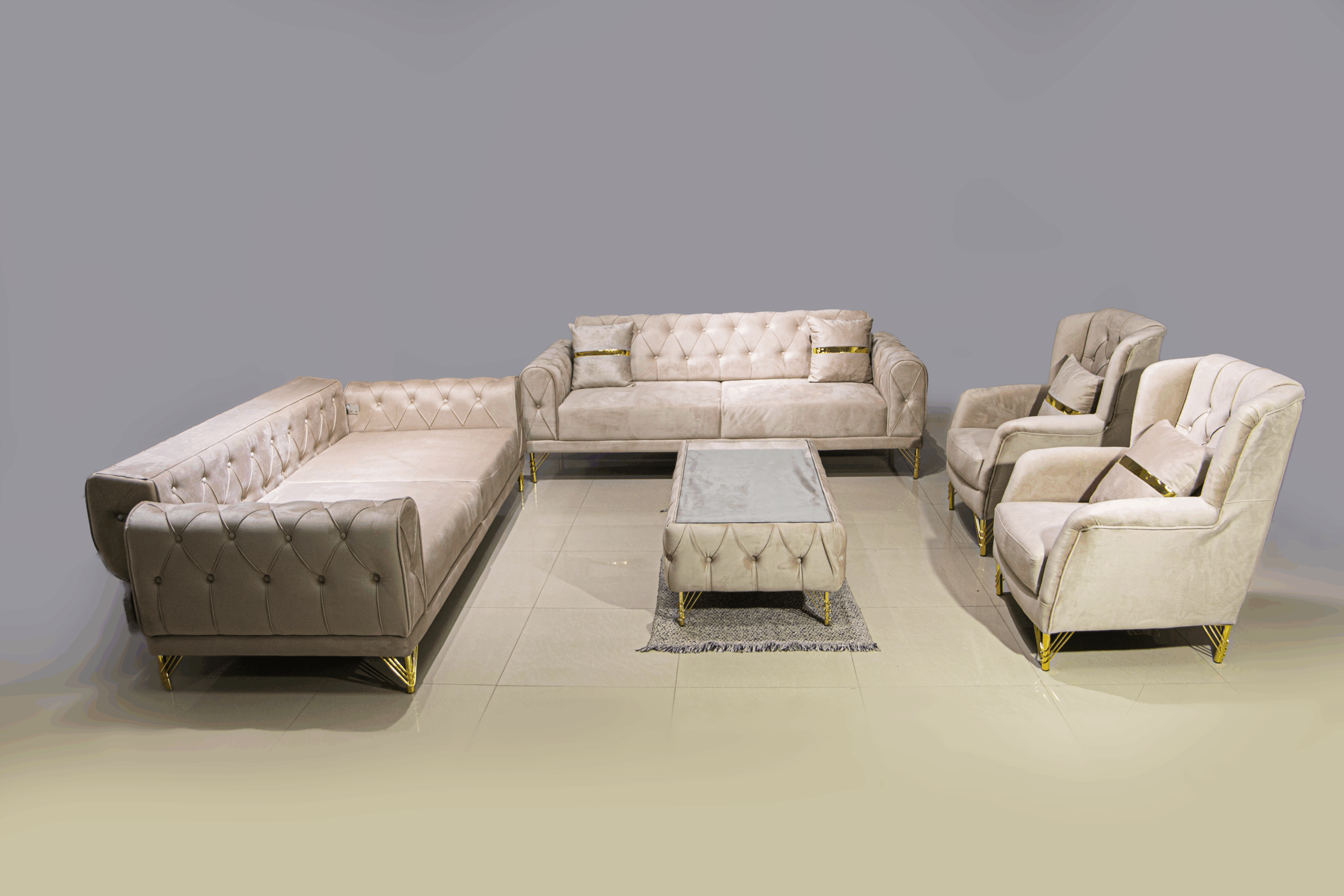 Garnitura Hurrem Bež Gold 3-3-1-1