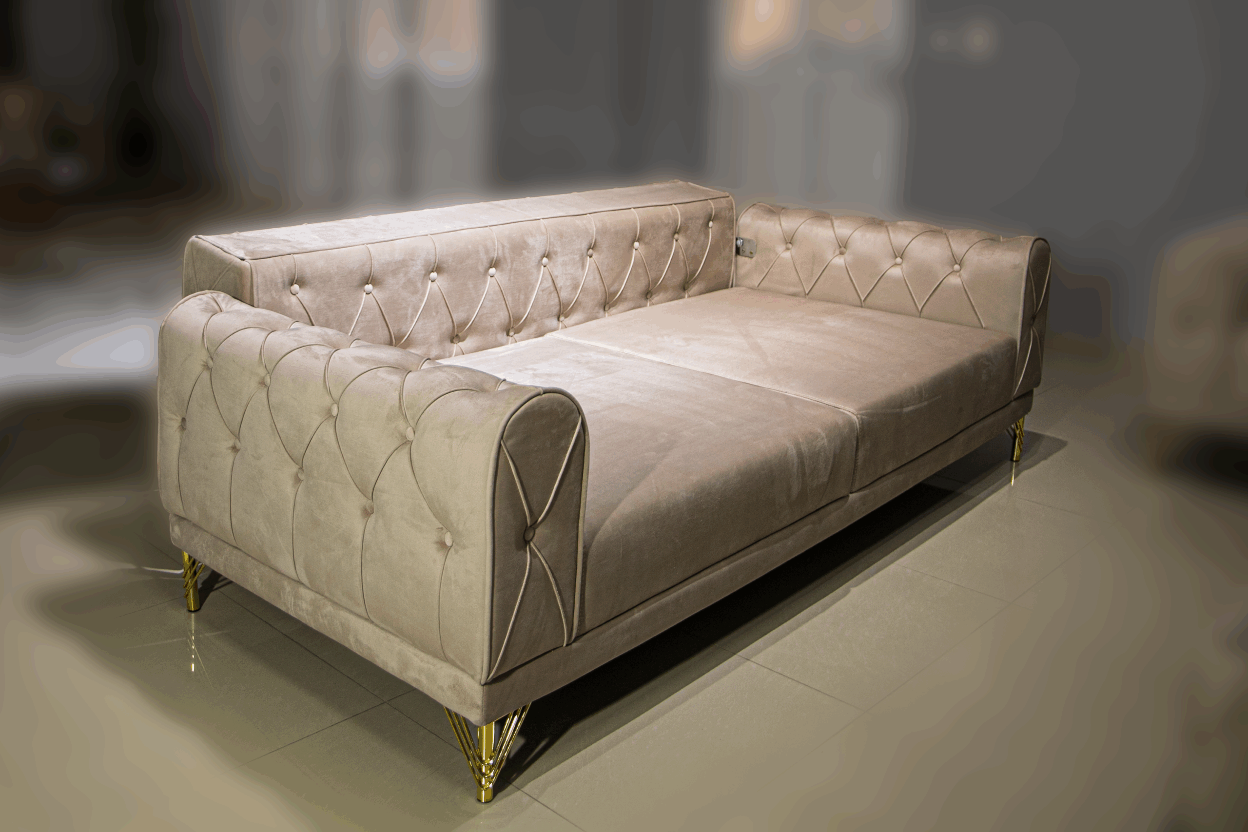 Garnitura Hurrem sadrži dva troseda i dve fotelje, dizajnirane za pružanje maksimalne udobnosti i stila u vašem domu. Izrađena od luksuznog pliša, ovaj komplet nameštaja je idealan za one koji traže sofisticiran izgled uz funkcionalnost. Mekani materijali i elegantne metalne noge čine je savršenim izborom za moderni dnevni boravak, dok njeni udobni sedišta i robustna konstrukcija osiguravaju dugotrajnu upotrebu.