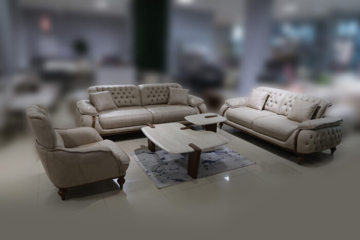 Garnitura Versace 3+2+1 – bež predstavlja savršen izbor za one koji žele spoj luksuza, udobnosti i funkcionalnosti. Elegantne linije i neutralna boja čine ovaj model idealnim za savremene, ali i klasične dnevne boravke.