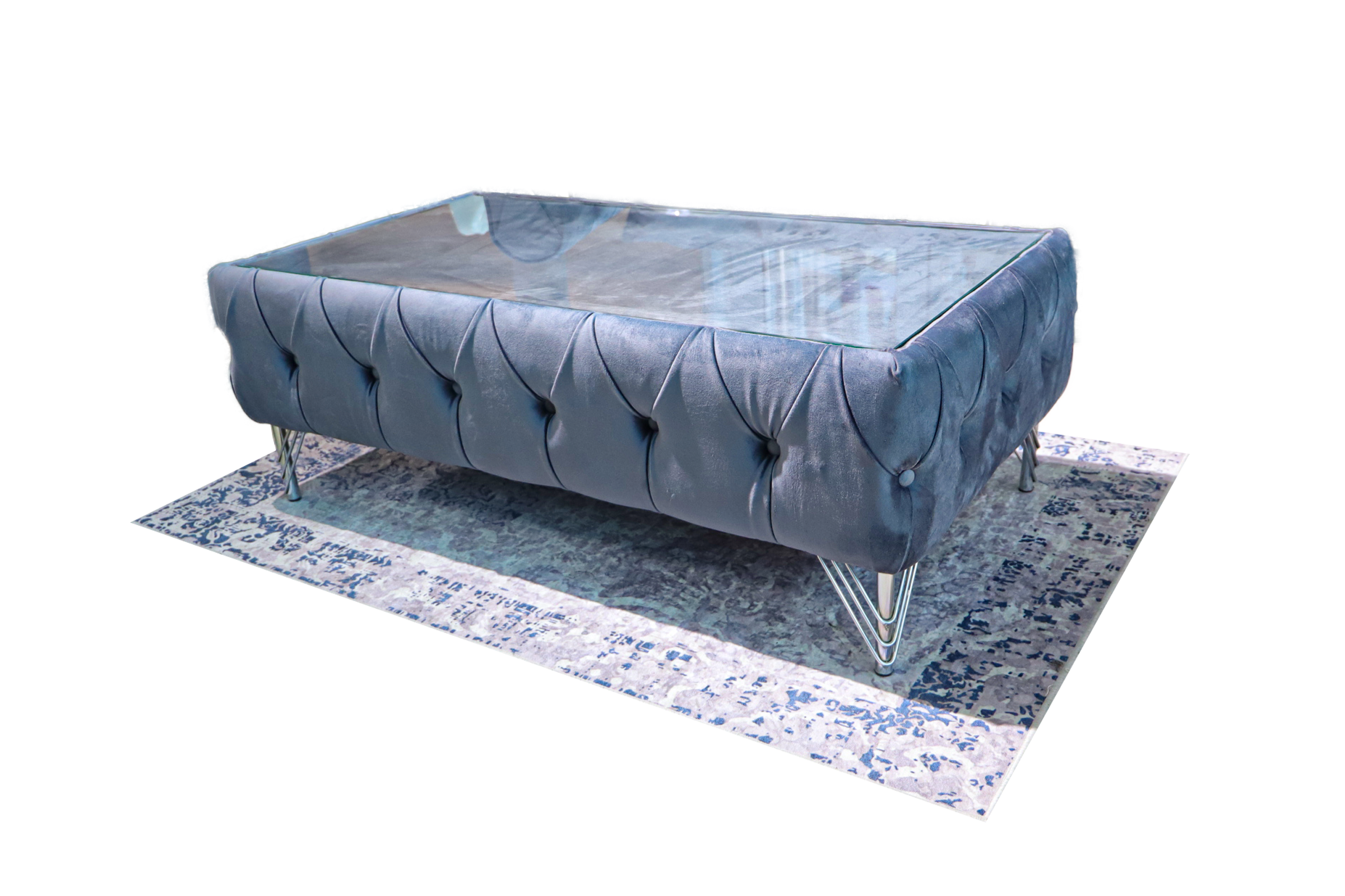 Klub sto Parma 130×70 cm, Sivo Srebro tapaciran sa staklenom pločom quantity