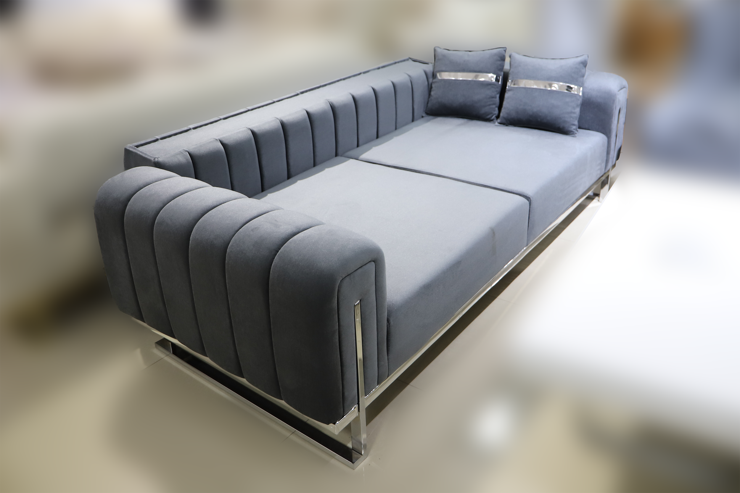 Sivo-srebrna paleta omogućava lako uklapanje u različite enterijere — od minimalističkih do glamuroznih.