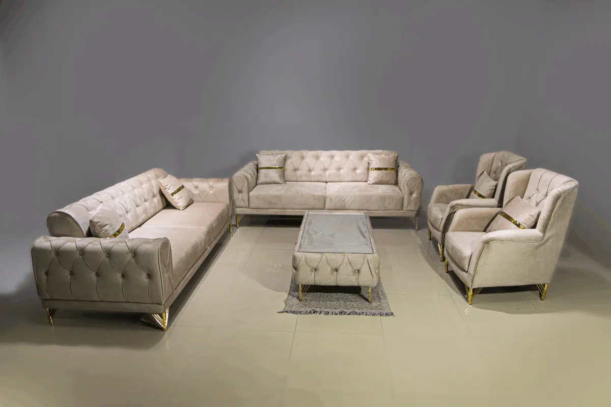 Garnitura Hurrem Bež Gold 3-3-1-1