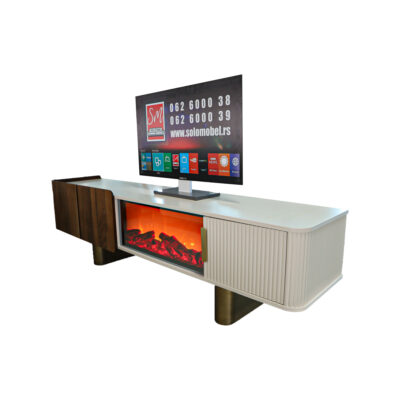 TV komoda Inter 200cm krem sa drvenim nogicama